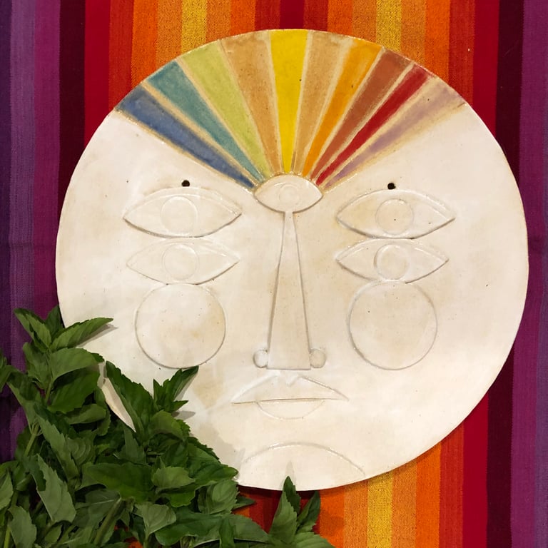 Hand built ceramic face for your wall or special occasion use.